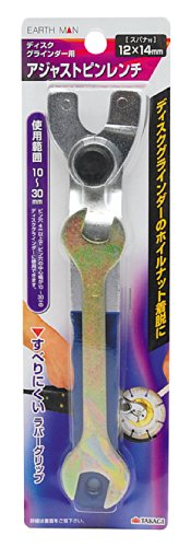 高儀(Takagi)のEARTH MAN ディスクグラインダー用アジャストピンレンチは、スパナ付きで12×14mmのサイズです。工具の調整やメンテナンスに便利で、頑丈な作りが特長です。