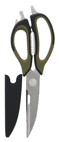 髙儀の多機能ハサミは、収納ケース付きで持ち運びに便利。分解して洗えるステンレス製で、キッチンやアウトドア、バーベキュー用に最適な調理器具です。カーキ色のデザインも魅力。
