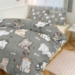 かわいい猫柄の布団カバー3点セット。柔らかい肌触りで高密度生地使用。隠しファスナー式で洗い替え速乾タイプ。シングルサイズ(102″x90″)、四季通用、安眠快眠をサポートします。