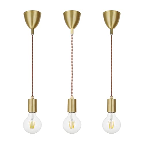 智光電気の真鍮製ペンダントライトはE26口金の裸電球タイプ。工事不要で、ダクトレール用。黄銅製の高級感があり、3灯セットで電球も付属しています。吊り下げ式でおしゃれな照明器具です。