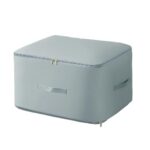 MILASICの布団圧縮袋はボックス型で掃除機不要。ジッパーで簡単圧縮、約40%省スペース。洗えるデザインで押入れやクローゼットの整理整頓に最適。Sサイズ(ブルーグレー)、取っ手付き。