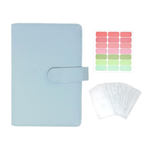 ミラシックのA6家計簿ポーチは、家計管理に最適なバインダーです。仕分けファイルとカードホルダー付きで、リフィルも同梱。くすみブルーのデザインが魅力的。