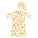 ミラシックのキッズ水着100cmは、男の子・女の子向けの半袖ロンパースです。UVカット機能付きで、帽子も付属しており、夏のプールや海、レジャーに最適です。