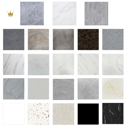 大理石調のフロアタイルで、貼るだけ・置くだけの簡単施工。45*45cmの大判サイズ、約3.2畳分(25枚)で初心者でもOK。撥水・防音・滑り止め機能付き、カット可能でDIYにも最適。接着剤も付属。
