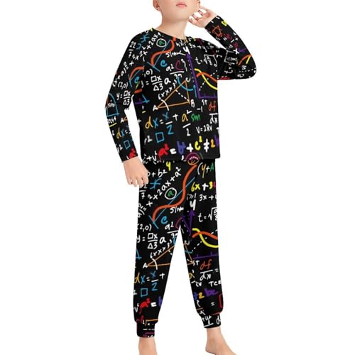 キッズパジャマ上下セット。物理科学や数学のデザイン、長袖で肌に優しい綿100%。快適なルームウェアとしておすすめ。サイズは150CM。