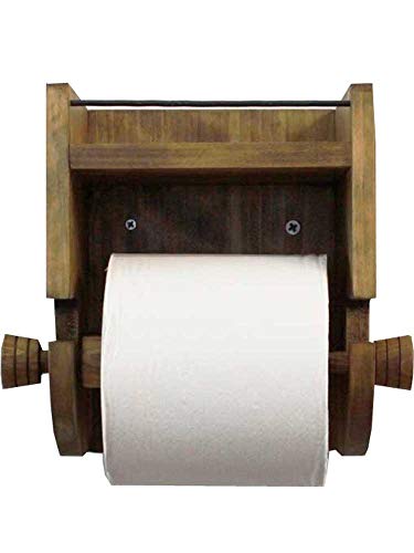 このトイレ用ペーパーホルダーは、海外サイズのW16×D14×H20cmで、アンティークブラウンのアイアンシェルフと木製のひのきを使用したオーダーメイド製品です。スタイリッシュで機能的なデザインが魅力です。