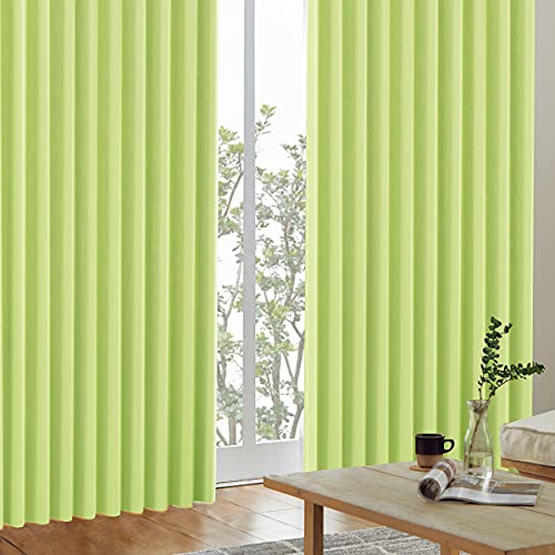 カーテンくれないの遮光カーテン「K-wave-D-plain」は、日本製で防炎ラベル付き。40色・140サイズから選べ、節電対策に最適。保温・保冷・断熱・遮熱効果あり。シャイニーグリーン、幅100×丈175cmの2枚セット。