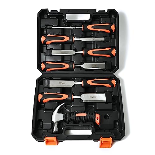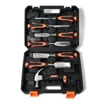 Rikopinの木工用ノミセットは、6mmから38mmまでのサイズが揃った6本組。木彫りや彫刻に最適で、ハンマーとホーニングガイドが付属。プロ仕様で、専用ケース入りで便利。
