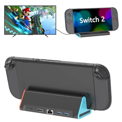 / Switch 2 ドック 【新登場-Switch 21.0.0システム対応】Tomistan 互換 TVドック 充電スタンド スイッチ2 ドック 直接にTV出力 切り替え ドック多機能 放熱対策 過電流保護 小型 4K 60Hz対応 Type-C USB3.0ポート付 HDMI2.0変換 携帯用 交換スタンド 充電モード 持ち運び便利 遅延なし 出張 軽量化 (黒と赤-LANポート付き)