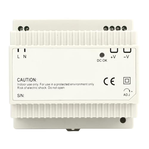 DINレール電源、100-240V対応、ステップ形状、100W出力。AC-DC変換、主に照明機器や工業用制御(24V)に適しています。