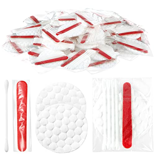 Tondiamoの100ピースホテルバニティキットは、個別包装の使い捨てアメニティで、各コットンパッド2枚、トラベルQTIPS、ネイルファイルを含む。モーテルや旅行に最適なトイレタリーアイテム。