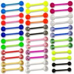 舌バー36個セット 14G 暗闇で光るプラスチックニップル – アクリルゴム ネオン グリッター クリアピアスジュエリー、16mm 1.6mm ストレートバーベル 男女兼用 スタイリッシュ 改造手術 クリスマス ハロウィン 高価買取中