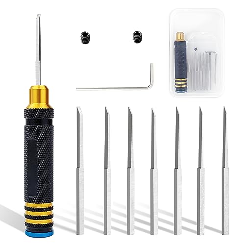 スジボリタガネ7本セットは、ガンプラやミニ四駆のプラモデルに最適な工具です。サイズは0.1mmから2.0mmまであり、細かなスジ彫りや模様を美しく再現できます。
