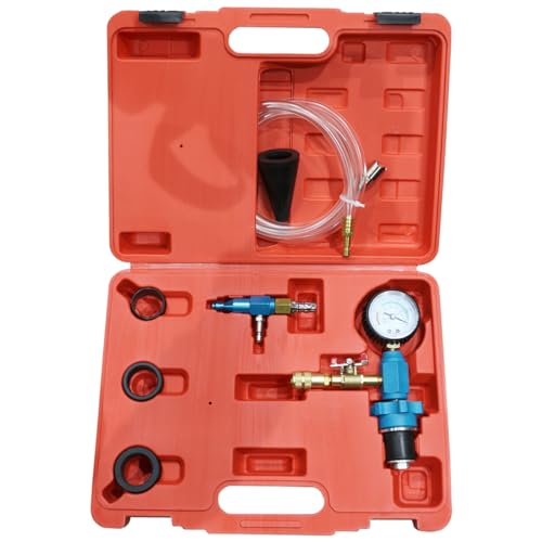 ラジエターエア抜き工具6点セットは、クーラントの充填や冷却水の注入に最適です。真空引き機能によりエア抜きがスムーズに行え、効率的なラジエーター交換が可能です。