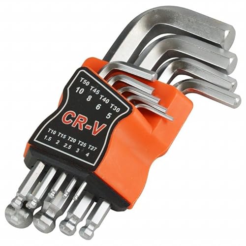 このL型六角レンチセットは、ボールポイント仕様で、ホルダー付き。サイズは1.5mmから10mmまでの9本セットで、ショートタイプのホロー六角棒です。