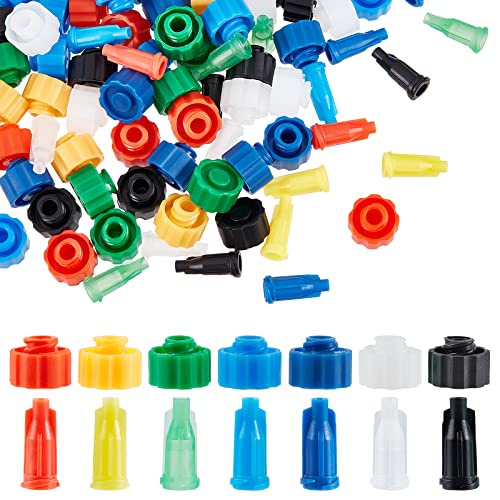 OLYCRAFT 140個 シリンジキャップ 2種類 シリンジ用キャップ プラスチック製 エンジニアリング シリンジチップキャップ 注射器用キャップ 実験用品 7色の高価買取
