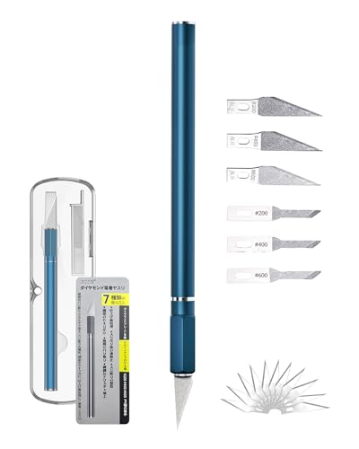 GOKEIのダイヤモンドヤスリは、7種類の替え刃が揃った超硬極薄ヤスリ(0.6mm)です。プラモデルや金属、ソフビなど硬い素材の研磨に最適で、バリ取りや面取り、仕上げ作業に役立ちます。