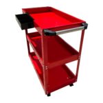 360℃回転キャスター付きの3段ツールワゴン。便利な収納スペースと頑丈なキャビネットデザインを採用した日本製工具箱。整理整頓に最適で、作業効率を向上させるアイテムです。