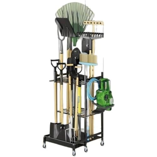 TOOWOOガーデンツール収納は鉄製の多機能倉庫ストレージで、園芸道具を整理するスタンドです。滑車付きで簡単に移動可能、車庫や庭で省スペースに収納できます。