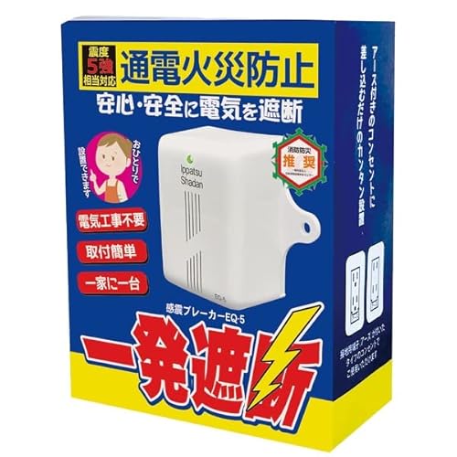 一発遮断 EQ-5 コンセント型感震ブレーカーは、地震を検知して自動的に電源を切る安全装置です。簡易包装での提供で、設置が簡単です。家庭やオフィスでの防災対策に最適です。