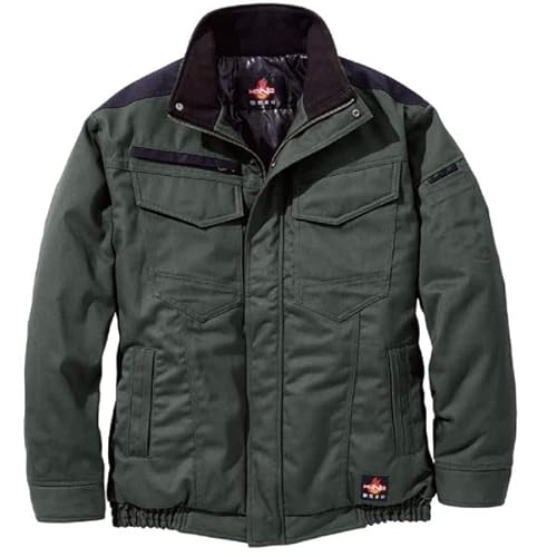 村上被服のHOOH難燃防寒ブルゾン4233カーキ8Lは、高い耐熱性を持ち、寒冷地でも快適に作業できる防寒デザインが特徴です。独自簡易包装で環境に配慮した商品です。