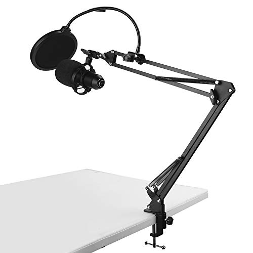 プロフェッショナルスタジオ用コンデンサーマイク。調節可能なブームアームスタンド付きで、クリアな音質を提供。PC録音に最適。