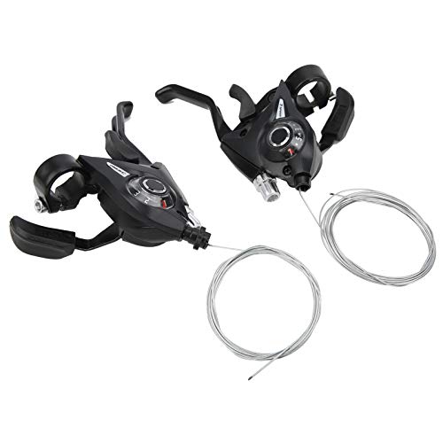 21スピード自転車のブレーキシフトレバーセット。視認性の高い変速表示インジケーター付き。アルミニウム合金製で、2台用の設計。ブラックカラーで、自動車にも適用可能な製品です。