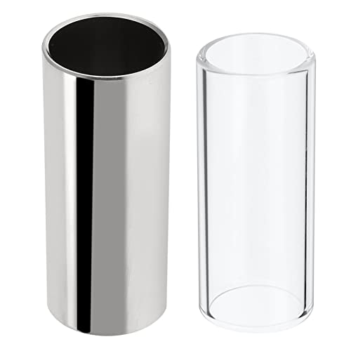 ギタースライドは、ステンレス鋼製の1個とガラス製の1個がセット。スムーズな滑りで音色を引き立て、さまざまなスタイルに対応。耐久性と美しい外観が特徴の中で、理想的なプレイをサポートします。