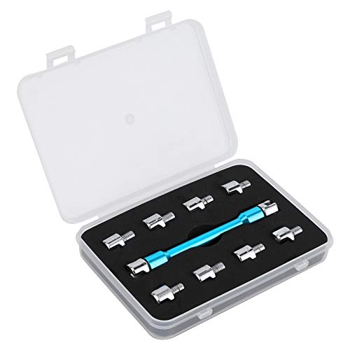 バイク用スポークレンチは、CNC加工の高品質スパナセットで、5.0-6.8mm対応の10種類の交換チップ付き。長さ93mmで、タイヤのスポーク調整や整備メンテナンスに最適です。