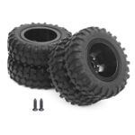RCトラック用のデュアルタイヤセットです。直径55mm、滑り止めゴムとアルミホイールの組み合わせで安定した走行を実現。交換用部品として最適な黒色のホイールセットです。