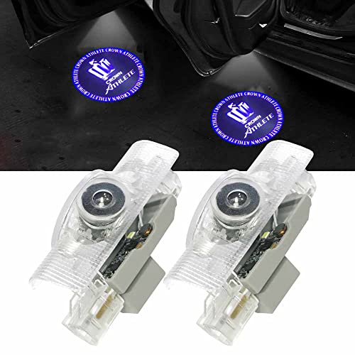 Minileクラウン車用ドアランプは180系・200系・210系クラウンアスリート用のLEDカーテシライトです。ドアを開けると青いロゴが投影され、ウェルカム効果を演出します。交換タイプの2個セット。
