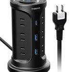 電源タップ Type-C付きタワー型、12個AC口と3個USBポートを搭載。雷ガード、3層保護機能付き。伸縮固定パーツでデスク下や壁掛け可能。安全設計で自宅や会社に最適なブラックモデル。