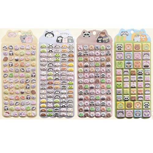 可愛い動物デザインのタイルシール4枚セット。ぷにぷに触感で子供の創造力を刺激します。貼り替え可能で、手帳や水筒、スマホケース、アルバムのデコレーションに最適です。