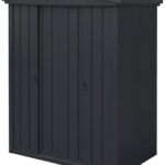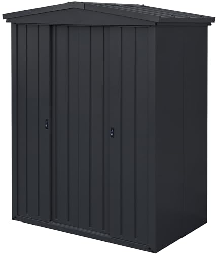 ガーデンマスターの物置TR-1518(BK)は、屋外用の大型収納庫で、三角屋根デザイン。サイズは幅163×奥行99×高さ197㎝で、大容量。安心設計の可動棚や鍵付き、転倒防止仕様。