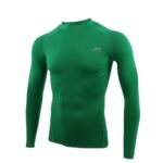 ティゴラのサッカー/フットサル用インナーシャツは、コンプレッションタイプの長袖モックネックで、メンズ向け。グリーンカラーで、動きやすさとサポート力を兼ね備えています。
