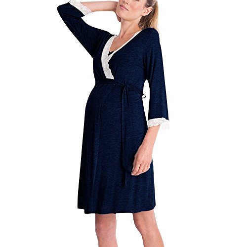 Tronet レディース マタニティパジャマドレスは、妊婦や授乳中のママに最適な長袖のデザインで、レースが施されています。Lサイズで、快適さとスタイルを両立したアイテムです。