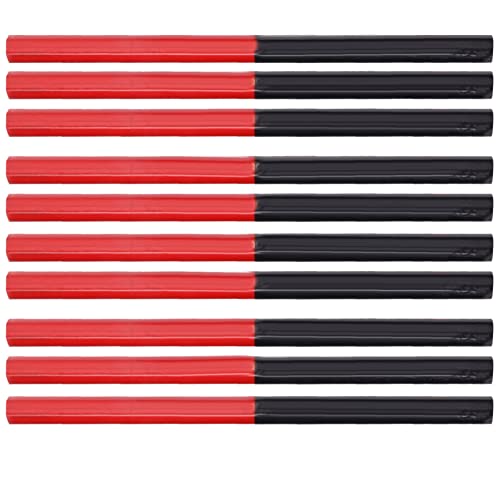 大工用鉛筆10本とレッドブルーの2芯六角ペン2本セット。DIYや木工作業に最適なマーキングハンドツールです。しっかりした書き心地で、正確なラインが引けます。