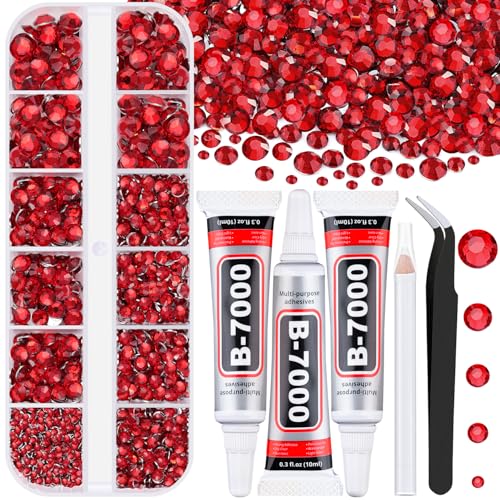 クラフト用樹脂ラインストーン3個入り、10ml B7000ジュエリー接着剤付き。レッドフラットバックジェムは、DIYネイルアートや衣類、靴に最適なクリスタルダイヤモンドです。
