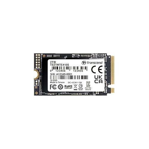 トランセンド M.2 NVMe SSD 2TB TS2TMTE410Sは、PCIe Gen4×4対応で、最大読込み5,000MB/s、最大書込み4,300MB/sの性能を持つコンパクトな2242サイズのSSDです。