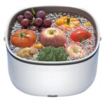 超音波洗浄機は、果物や野菜、魚、肉を全自動で洗浄します。省エネ設計で高圧水クリーナー機能を搭載、節水効果もあり。IPX7防水仕様でコンパクトなサイズ(23x23x13cm)で、残留農薬の除去にも対応。