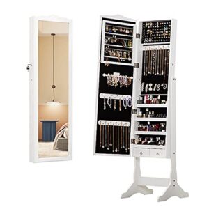 ジュエリーオーガナイザーキャビネット フロアのフルレングスミラー収納キャビネットの壁掛けフィッティング床のフルレングスミラージュエリーキャビネットクロークプレートミラー(White2)