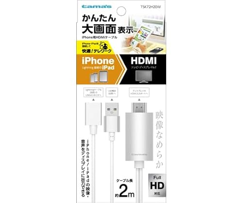 多摩電子工業のTSK72H20Wは、iPhone用のHDMIケーブルです。高品質な映像をテレビやモニターに出力でき、iOSデバイスとの簡単な接続が特徴です。耐久性に優れ、フルHD対応で快適な視聴体験を提供します。