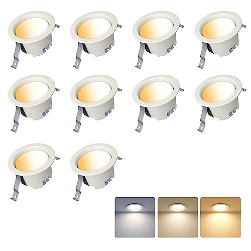 C-J-W 屋内用LEDダウンライト 天井埋込型 埋込穴100φ led 壁スイッチで昼光色 電球色 昼白色 3段階調色 色温度メモリー機能 高気密SB形 浅型6H 5W 500LM 白熱球40形相当 照明器具 リビング 寝室 キッチン 天井照明 小型 常夜灯 トイレ 10個セットの製品情報