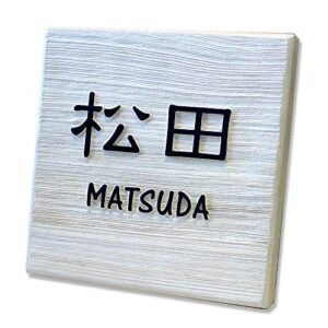 表札 木製 ヒバ 150角 浮き彫り 白 おしゃれ 戸建て 木 ホワイト