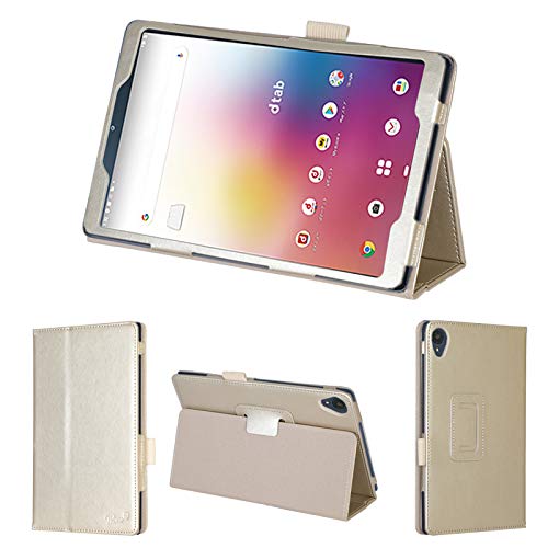 wisersタッチペン・保護フィルム付きのdocomo dtab Compact d-42A専用ケース。8.0インチ対応、2020年新型デザイン、カラーはゴールド。安心の保護機能で持ち運びに便利です。