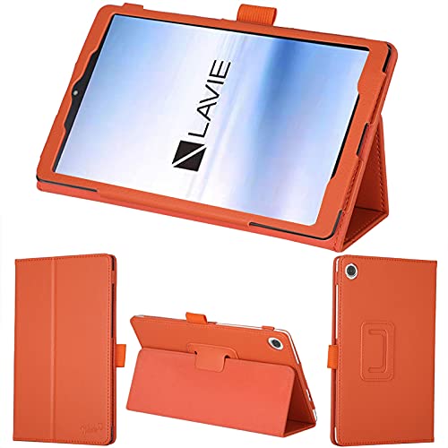 wisers LAVIE T8 タッチペン・保護フィルム付の8インチタブレットケース。サイドマグネットにより安心して使用できるデザイン。オレンジ色でスタイリッシュに仕上げられています。