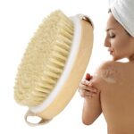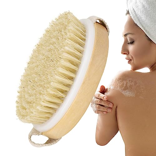 天然毛を使用したドライブラッシングボディブラシ。木枠付きで、体の汚れを取り除き、マッサージ効果もあるエクスフォリエーターです。