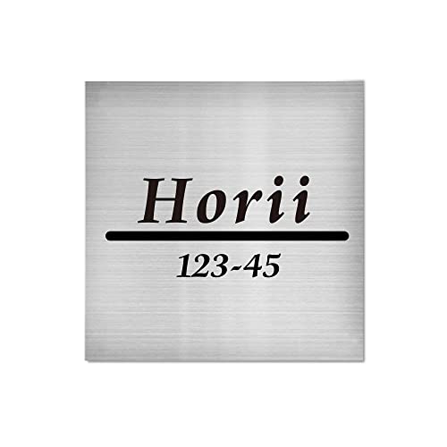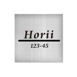 天通ライトの屋外用表札は、マンション用やポスト表札としても利用可能。二世帯対応のオーダーメイドで、英字と番地をデザインした切り文字のカッティングシート製。サイズは120×120mmです。