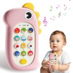 赤ちゃん向けの取り外し可能なシリコンカバー付き携帯電話おもちゃ。知育機能、音楽、英語学習。0歳〜3歳に最適で、誕生日プレゼントにも人気。恐竜デザイン。