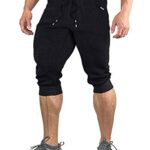 メンズスポーツウェアのクロップドパンツ。吸汗速乾素材で快適。ジュニア向け7分丈のジョガーパンツ、大きいサイズも対応。無地デザインで春に最適。カラーはブラック、サイズは2XL。